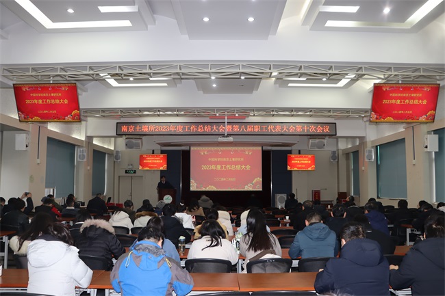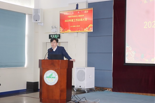 所长沈仁芳代表所领导班子作了题为《凝心聚力、攻坚克难,加快抢占土壤科技制高点》的2023年度全所工作总结报告。报告指出,2023年我所领导班子团结带领干部职工以习近平新时代中国特色社会主义思想为指导,认真贯彻落实党中央、国务院关于科技创新的决策部署和院党组工作要求,围绕抢占科技制高点这一核心任务,聚焦主责主业、狠抓工作落实,着力推进实施方案编制、国重重组建设、关键技术攻关、人才队伍建设和加强党对科技工作的全面领导等各项重点工作开展,研究所改革创新发展各项工作取得了一系列新进展新成效。同时,报告也具体分析了研究所目前存在的主要问题与不足,并对2024年重点工作任务进行了部署。沈仁芳强调,加快抢占科技制高点的新征程已经全面开启,全所上下要紧紧围绕“四个率先”和“两加快一努力”目标要求,以抢占科技制高点为核心任务,以昂扬奋进的精神状态和勤勉务实的工作作风,凝心聚力、攻坚克难,全力抢占土壤科技制高点,为实现高水平科技自立自强建设世界科技强国不断作出新的贡献!