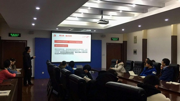 12月26日下午,17级研究生党支部在惠联大楼第三报告厅顺利召开了第一次党员大会,会上就《关于深化中央纪委国家监委派驻机构改革的意见》和《中国共产党支部工作条例(试行)》进行了充分的学习。首先,为了切实加强党支部建设,进一步做好党员教育管理工作,支部根据党员所在实验科室划分为4个党小组,并根据组内党员实际情况指定党小组组长。