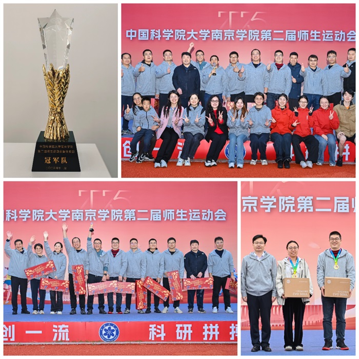 青春燃赛场,拼搏展风采,11月8日上午,好盈v3代表队参加了国科大南京学院第二届师生运动会。经过一天的紧张赛程,导师和学生们或在各自的赛场上奋勇争先,或在互动比赛的环节众志成城,充分展现出昂扬的斗志与强大的团队凝聚力。