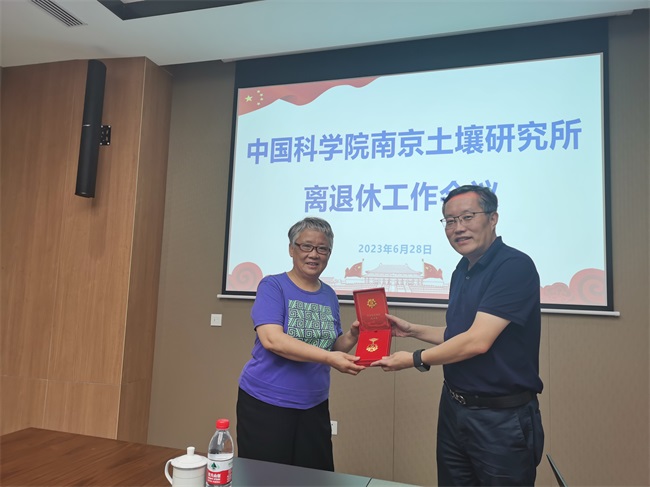 吕俊杰副所长通报了院党建工作会议精神和研究所上半年各项主要工作进展,对事关老同志生活和医疗待遇落实的离退休工作,从政策解读、贯彻落实等方面做了进一步梳理、解释和说明。此外,他还为今年荣获在党50年纪念章的老党员车玉萍同志颁发了奖章,并合影留念。