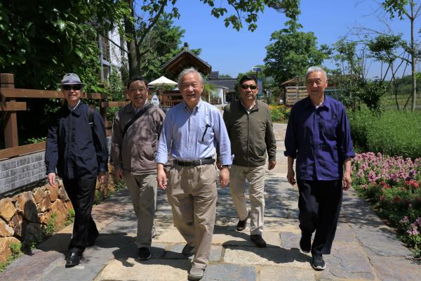 参观最后,老同志们或三五一群,或两两相伴,走上了荷花池上的木质栈道,与景色合影,与花朵相亲。他们满眼春光明媚,满心欣悦自豪,无不感叹在党的坚强领导下,改革开放40年来美丽乡村建设所取得的显著成就,不仅留住了青山绿水,守住了乡村沃土,也必将实现中华民族伟大复兴的中国梦。