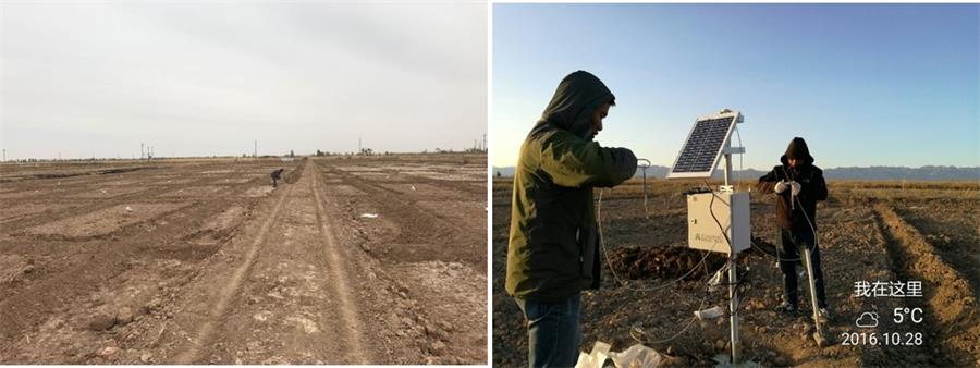 图3 试验区建设及土壤水、盐、温度原位监测仪器安装及调试