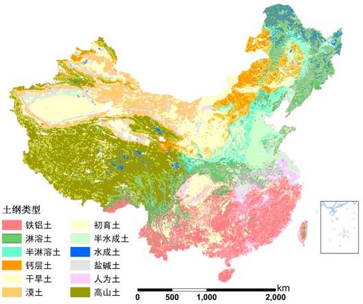 图 基于美国土壤系统分类的中国1:100万数字化土壤图(土纲)