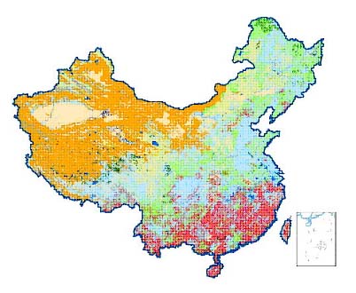 到目前为止还没有编制出版全国性的1:100万纸质土壤属性图,但这种状况远不能满足科研、教育和生产部门的需求,为此我们采用中国1:100万土壤图与全国范围内土壤剖面属性数据融合的方法,编制成中国1:100万数字化土壤属性图,而后把矢量图转换成栅格数据。中国1:100万空间化的土壤属性数据所包括土壤属性:土壤砂粒含量、土壤粉粒含量、土壤粘粒含量、土壤容重、土壤田间持水量、土壤凋萎系数、土壤pH值、土壤全N含量等。所有栅格土壤属性数据可以编制成不同土壤层次深度的分层数据,通常土壤剖面分层深度为0~10cm、10~20cm、20~30cm、30~70cm和大于70cm。