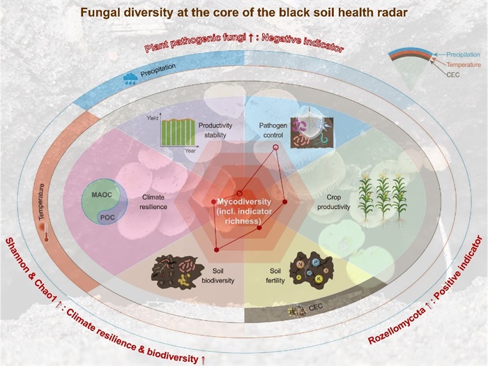 黑土地是东北粮食安全的重要基础,但在气候变化与高强度利用的背景下不断退化。土壤生物多样性被认为是支撑土壤肥力、碳固持、病原菌控制和生态系统稳定的关键,但“哪些土壤生物更为重要”,“多样性如何影响农业功能”,“黑土地健康的生物指示因子是什么”等问题仍缺乏系统量化和区域尺度证据。