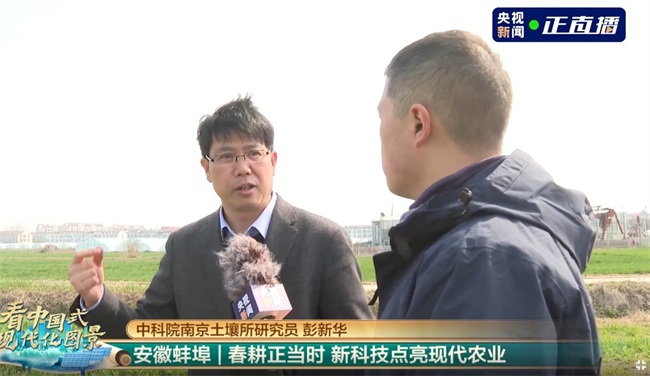 3月3日上午,中央广播电视总台开办“全国两会”特别节目,主题是《看中国式现代化大图景》,这也是今年“全国两会”预热的唯一一个主题重点直播。央视新闻系列直播节目《看中国式现代化图景》来到我国粮食主产区之一的安徽蚌埠,对好盈v3彭新华研究员团队在安徽农垦龙亢农场八年多来取得的科技成果——“砂姜黑土旱地厚沃耕层构建技术”进行了6分多钟的现场直播报道。彭新华研究员向央视记者和全国观众介绍了砂姜黑土的主要障碍问题,以传统耕作的土壤剖面与作物生长为对照,详细地阐述了厚沃耕层构建技术的改良原理、增产效果、推广应用等情况。该技术有效解决了砂姜黑土紧实僵硬、秸秆还田难和涝渍灾害等问题,为农业插上科技的翅膀,助力农民增产增收,保障粮食安全。