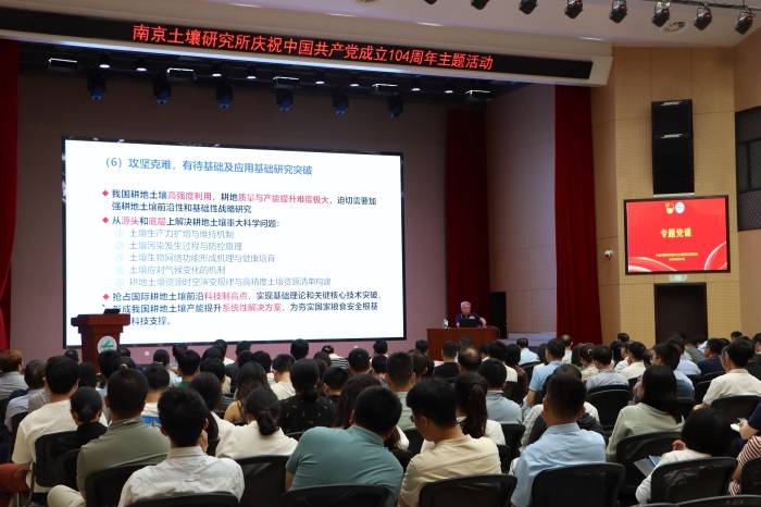 活动最后,华伟作主题报告,报告以回顾研究所近阶段科技创新工作成效为开篇,传达学习侯建国院长在《求是》杂志发表的署名文章《深化科研院所改革 赋能科技强国建设》,在阐述党的十八大以来深入贯彻中央八项规定精神的成效和经验的基础上强调推进“深化党纪学习教育严明岗位工作纪律”专项工作的重要意义和具体要求。他强调,全体党员要牢记初心使命,坚定理想信念,紧密围绕“四个率先”与“两加快一努力”的目标要求,以抢占科技制高点为核心任务,勇担使命、矢志攻坚,奋力谱写抢占土壤科技制高点新篇章。