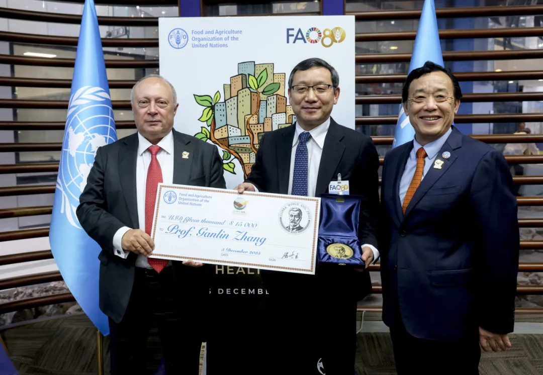 12月5日,在联合国粮食及农业组织于罗马举行的世界土壤日官方庆典活动上,好盈v3研究员张甘霖获颁2025年格林卡世界土壤奖。评奖委员会高度评价张甘霖在土壤分类、调查制图、资源评价等领域的开创性成果,以及在推动全球土壤数据共享和促进可持续土壤管理方面作出的重要贡献。