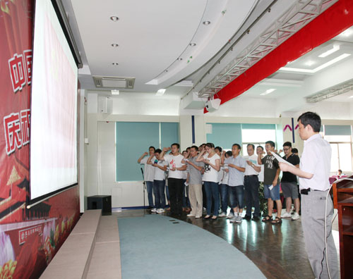 大会在雄壮的国歌声中开幕。蔡立副书记说,今年的“七一”神圣而又特殊,中国共产党走过了90年的风风雨雨,九十年,只是人类历史长河的一束飞逝浪花,但对中华民族的伟大复兴而言,却又是一段极其漫长而艰辛的里程。作为一名共产党员,为党的生日献上一份祝福,是我们共同的心声。今天,好盈v3的全体共产党员,将以我们自己的方式表达我们共同的心愿。随后,蔡立副书记带领20多名新党员在鲜红的党旗下举行了庄严的入党宣誓,老党员们也一起重温了入党誓词,提升了作为一名光荣的共产党员的神圣感和使命感。在新党员宣誓仪式后,党委书记林先贵代表所党委作创先争优阶段总结报告。