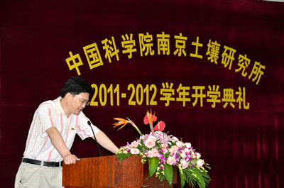 沈仁芳代表土壤所向2011级新生的到来表示热烈欢迎与祝贺,向大家全面阐述了土壤研究所所训“唯实 求真 协力 创新”的内涵,并要求新生时刻牢记。随后蒋新介绍了土壤所优良的学术传统、浓郁的文化底蕴、雄厚的科研实力和充满活力的教育机制,他要求同学们继承和发扬土壤所艰苦创业、求真务实的光荣传统,培养主动获取知识、创新发明、解决实际问题、团结协作及语言表达五大能力,在土壤所这个大舞台上挥洒激情和汗水,收获梦想与未来。