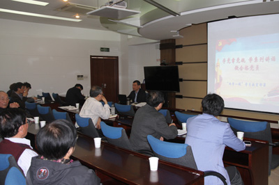 随后,蔡立根据专题一“学党章,坚定理想信念”的学习要求做了重点发言,对党章的基本知识和十八大修订的新党章进行了深入的解读,并就怎样学好党章提出了要求。蔡立指出,党章是党内最基本和最高的政治行为规范,是为实现党的纲领所制定的根本法规,是党的各级组织和全体党员必须严格遵守的基本准则和规定。蔡立表示,十八大通过的新党章虽然只有一万七千多字,但内涵十分丰富深刻,为实现“五位一体”总体布局奠定了基础保证。蔡立强调,学习党章重在经常认真、知行合一、坚决执行,学习党章贵在树立党章意识、党员意识、党的意识,我们只有坚持认真学、经常学、反复学,逐字逐句通读原文,全面系统地领会掌握党章的内涵要义,才能找出自己存在的不足和差距,不断地改进提高,做到内化于心、外化于行,做一名合格的共产党员,积极向优秀共产党员的目标靠拢,发挥好党员的模范带头作用,切实做到“创新科技、服务国家、造福人民”。