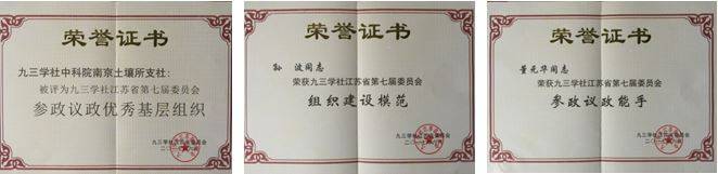 九三学社江苏省第八次代表大会于6月21--23日在南京举行。为激励引导各级基层组织及社员立足本职岗位,在江苏经济社会发展和科技创新战略中作出更多更大的积极贡献,大会表彰了在参政议政、社会服务等工作中表现突出的先进集体和先进个人。九三学社好盈v3支社被评为“参政议政优秀基层组织”;支社主委孙波荣获九三学社江苏省第七届委员会“组织建设模范”,并当选第八届省委委员;支社社员董元华荣获九三学社江苏省第七届委员会“参政议政能手”,并当选九三学社中央第十一次代表大会代表。