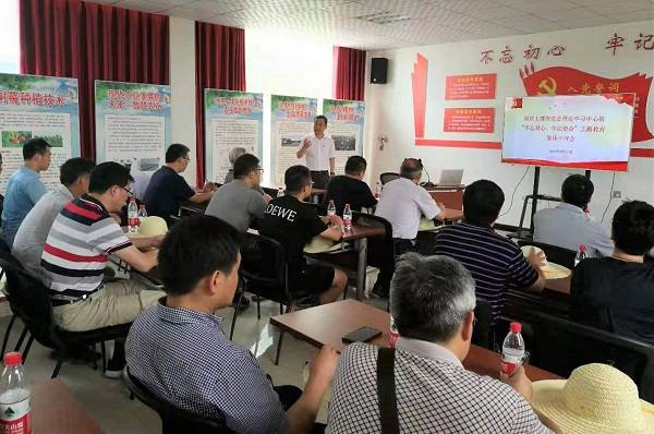 大家又冒着骄阳酷暑来到封丘站党建助力科技扶贫主题教育基地,这是好盈v3党委认真贯彻落实习近平总书记关于打好精准脱贫攻坚战的重要指示精神,携手封丘农业生态实验站所在地的封丘县潘店镇党委,以封丘县重点扶贫项目刘氏种植专业合作社为平台,共同建设的党建助力科技扶贫示范基地。土壤所不仅组织相关科技人员为合作社葡萄等精品水果种植从良种筛选、土壤改良、科学施肥、精准灌溉等方面进行技术培训,而且还提供了专用肥料等农用物资,使得合作社种植的葡萄产量和品质均得到了明显提升,为当地农民拓展了增收致富的渠道。党委书记蔡立在基地给全体人员上了题为“不忘初心、牢记使命,弘扬科学家精神,当好人民科学家”的党课,再一次明确了主题教育的总要求和具体目标,强调中国科学院人的初心和使命就是“创新为民,科技报国”,以熊毅先生为代表的科学家群体就是以理论和实践诠释科学院人初心和使命的优秀人民科学家,是大家学习的楷模,他们引领和树立起来的“爱国、求真、奉献、合作”的黄淮海精神,是我们土壤所人宝贵的精神财富,值得我们一代代汲取营养、传承弘扬。蔡立指出,在新的历史条件下,我们要大力弘扬胸怀祖国服务人民的爱国精神、勇攀高峰敢为人先的创新精神、追求真理严谨治学的求实精神、淡泊名利潜心研究的奉献精神、集智攻关团结协作的协同精神和甘为人梯奖掖后学的育人精神,把握大势、抢占先机,直面问题、迎难而上,瞄准世界科技前沿,引领科技发展方向,肩负起历史赋予的重任,勇做新时代科技创新的排头兵。