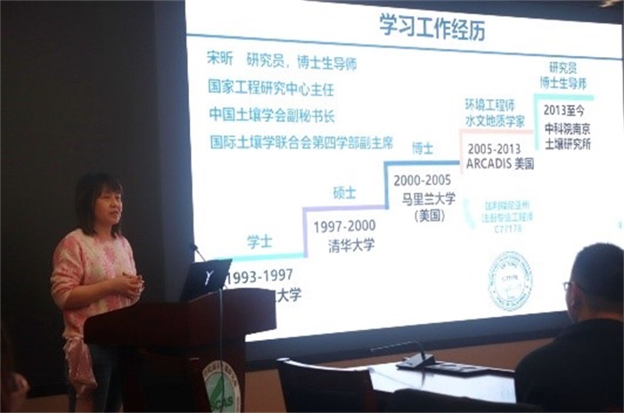 分享环节伊始,宋昕老师以“志趣、创新、趣魂”为核心脉络,讲述了自己的科研人生历程。她指出,科研之路的起点是初心与热爱(Aspiration and Passion),唯有对研究领域怀揣真诚的热情,才能抵御科研路上的枯燥与艰辛;进阶之路在于探索与突破(Exploration and Innovation),要在污染修复等领域主动钻研、大胆创新,不断挖掘研究的突破口;终极追求则是担当与升华(An Interesting Soul),在服务国家战略、贡献社会发展中实现个人价值。结合自身海外工作经历及回国后扎根土壤修复一线的选择,宋昕老师生动还原了团队在铬污染场地治理中,攻坚克难实施“动态地下水循环-原位微生物修复”工程的全过程,用鲜活案例诠释了科研工作者的责任与担当。她勉励同学们:“要坚守科研初心,更要勇于拥抱变化,在祖国最需要的领域深耕细作,走出属于自己的科研之路。”