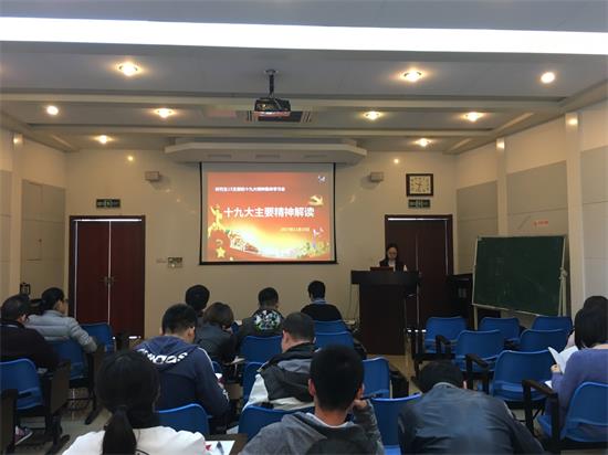 首先,党支部书记倪妮同志带领支部党员们回顾了十九大的基本概况,并对十九大的主要精神进行了着重学习。重点强调了中国共产党人的初心和使命,就是为中国人民谋幸福,为中华民族谋复兴。这个初心和使命是激励中国共产党人不断前进的根本动力。我国社会主要矛盾已经转化为人民日益增长的美好生活需要和不平衡不充分的发展之间的矛盾,发展不平衡不充分已经成为满足人民日益增长的美好生活需要的主要制约因素。另外,本支部均是青年党员,党支部书记特别强调了十九大中提到的“青年兴则国家兴,青年强则国家强”,希望我们每个人能够不懈奋斗,坚定理想信念,志存高远,脚踏实地,勇做时代的弄潮儿。