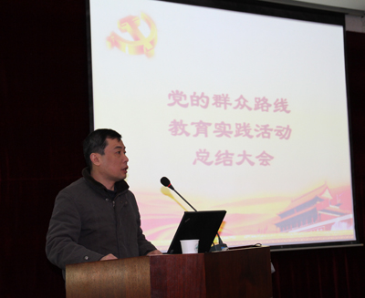 党委书记蔡立以“践行党的群众路线,以作风建设的新成效促进科技创新”为题,对我所教育实践活动进行了全面回顾和总结。蔡立指出,自2013年8月至2014年1月,我所集中组织、深入开展了党的群众路线教育实践活动,所党委把教育实践活动作为加强党的先进性、纯洁性的重大政治责任和推动科技创新的重要政治机遇,把握“牢记宗旨、强化责任、转变作风、创新为民”的历史责任,围绕活动的总体要求、目标任务、主要内容组织开展各环节工作。蔡立强调,半年来,在院督导组和分院党组的悉心指导以及全体党员干部和职工群众的共同参与下,始终贯穿“照镜子、正衣冠、洗洗澡、治治病”的总要求,紧抓“为民务实清廉”这个主题,聚焦“四风”中的突出问题,紧密结合实际,打牢“学习教育、听取意见”这个基础,突出“查摆问题、开展批评”这个核心,抓好“整改落实、建章立制”这个关键,扎实有序地完成了教育实践活动的各项任务,取得了实实在在的成效。