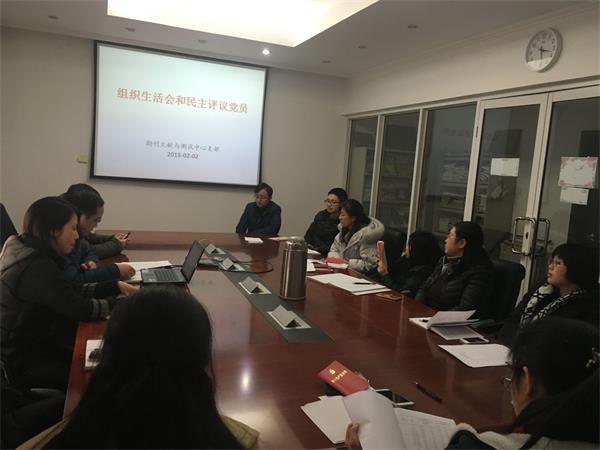 在集中学习的基础上,支部召开了组织生活会,开展党员民主评议。支部党员16名出席了支部大会(另有2名党员因工作原因进行了网上自评等环节)。在简要介绍了会议议题后,支部书记陈德明首先代表支部班子对2017年支部工作进行了较为详尽的总结,随后通报了支部班子查摆问题、开展批评和自我批评情况,在广泛征求支部党员及支部所在部门群众意见,以及支委会在开展批评和自我批评的基础上,查摆了支部班子存在的问题。紧接着开展了支部党员个人自评和党员互评。在个人自评环节,支部党员同志结合自身实际,纷纷摆出了在政治、纪律、品德、作用方面存在的问题。接着,支部党员以投票方式进行了民主测评。根据通知要求,结合党员民主测评,并经支委会评定,支部评定优秀党员6名,合格党员12名。通过支部组织生活会和民主评议党员,支部党员对照“四讲四有”合格党员标准,认真进行自我剖析,开展自我批评,查找自身不足,做合格共产党员;支部班子广泛听取党员群众意见,积极查摆问题,加强整改,促进了基层党支部建设。